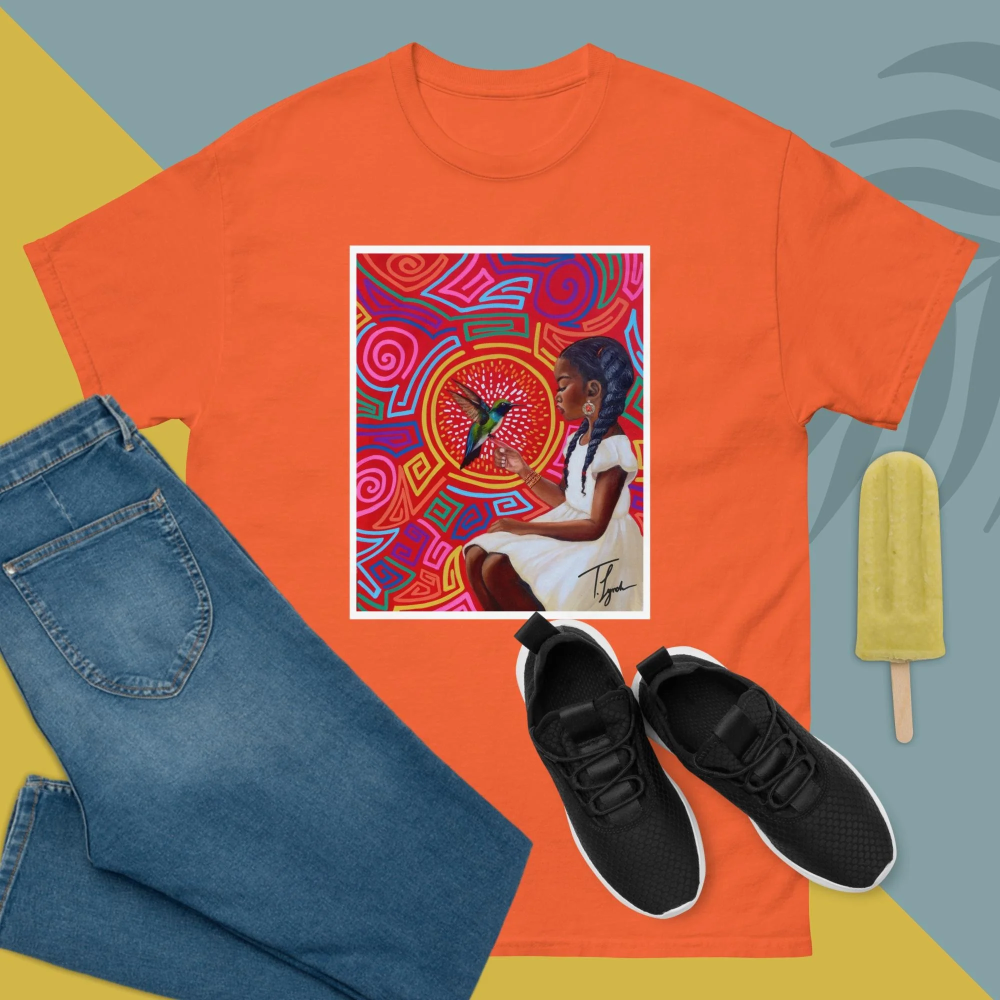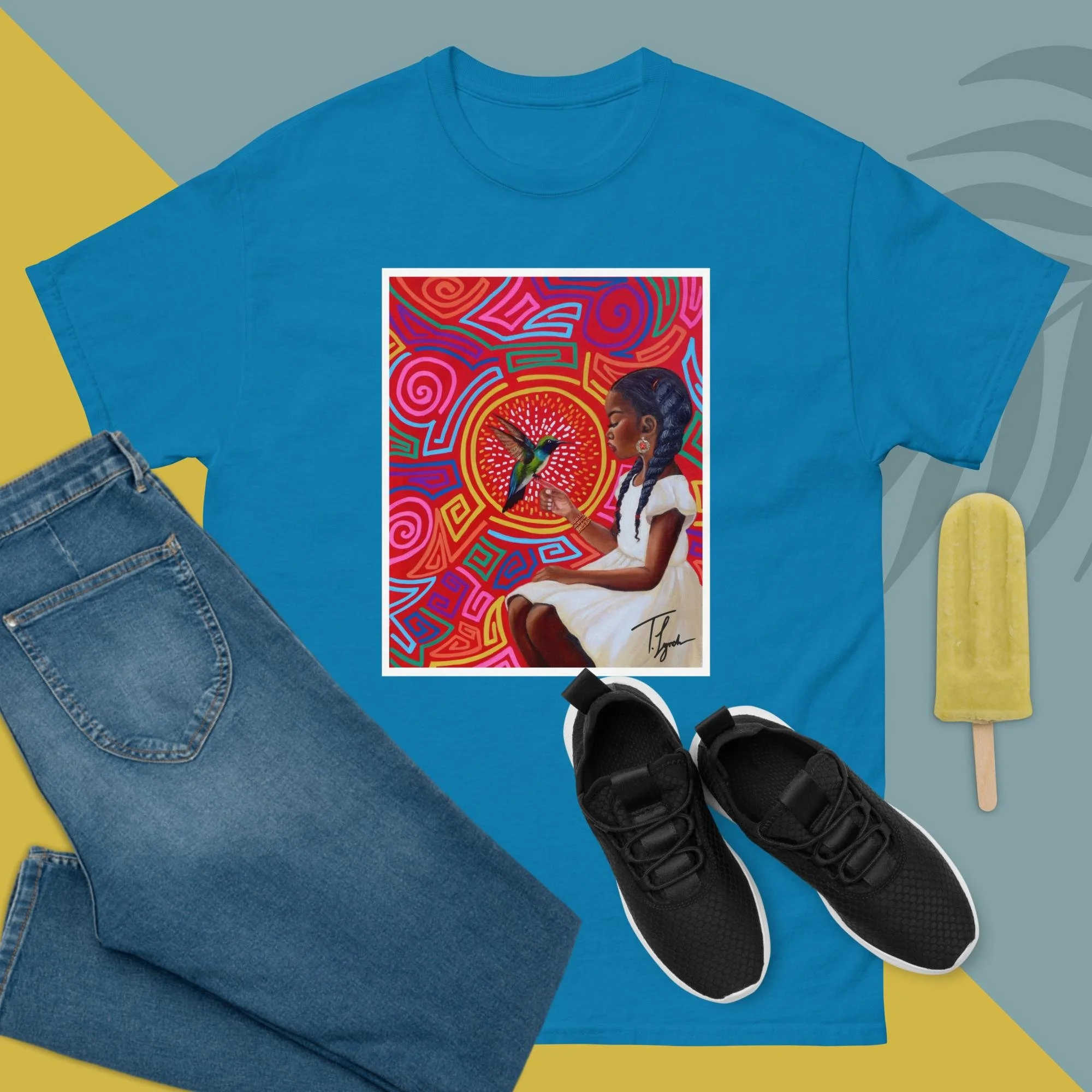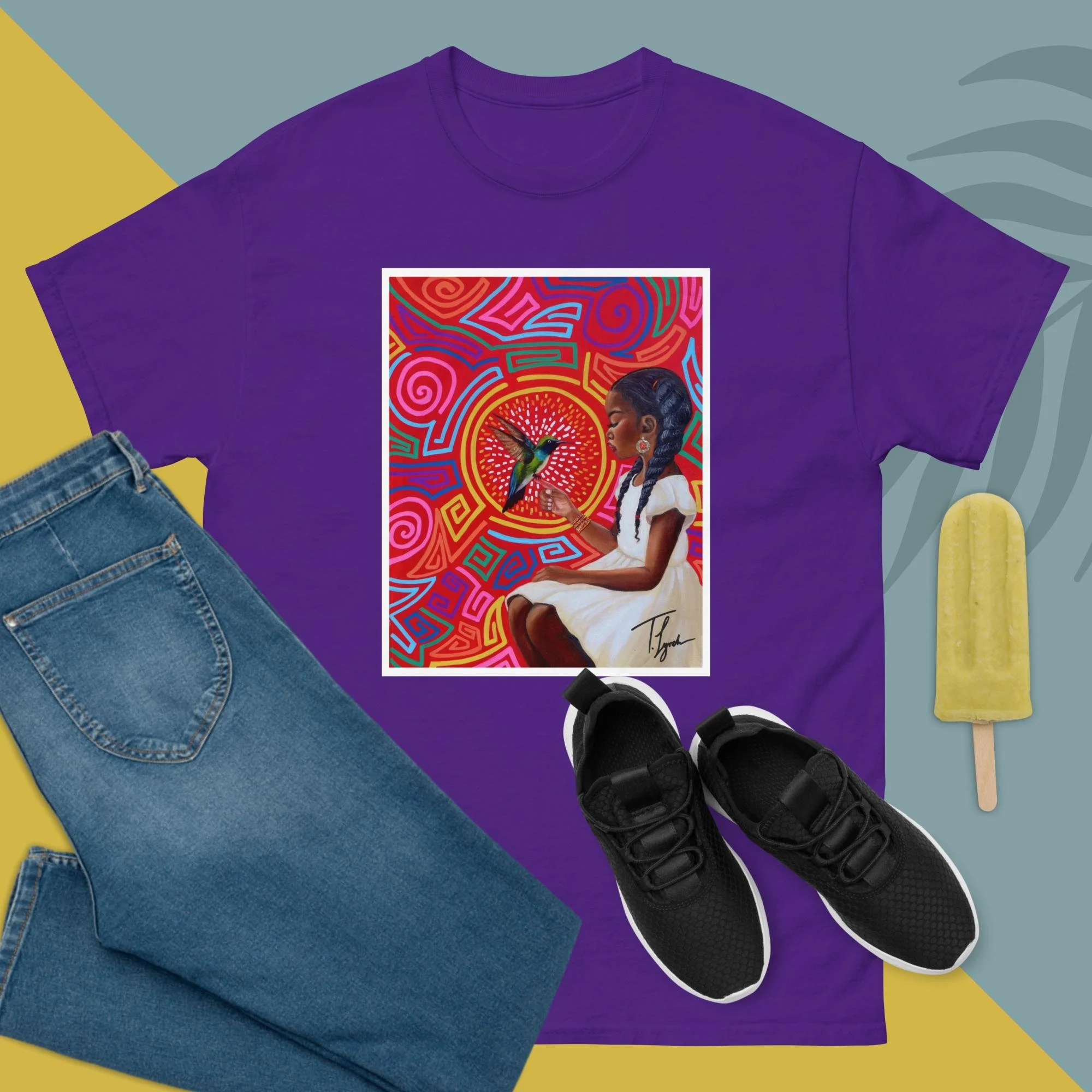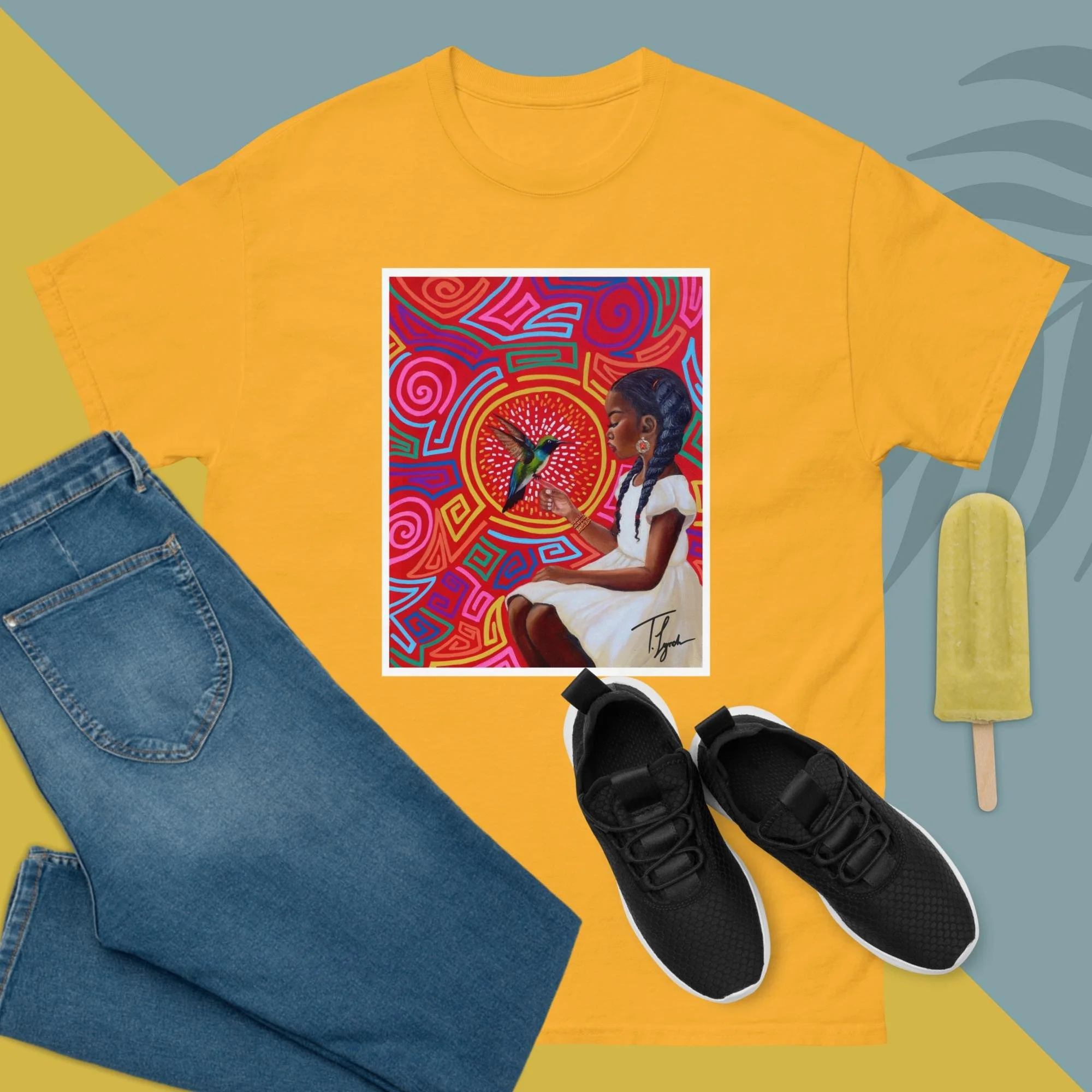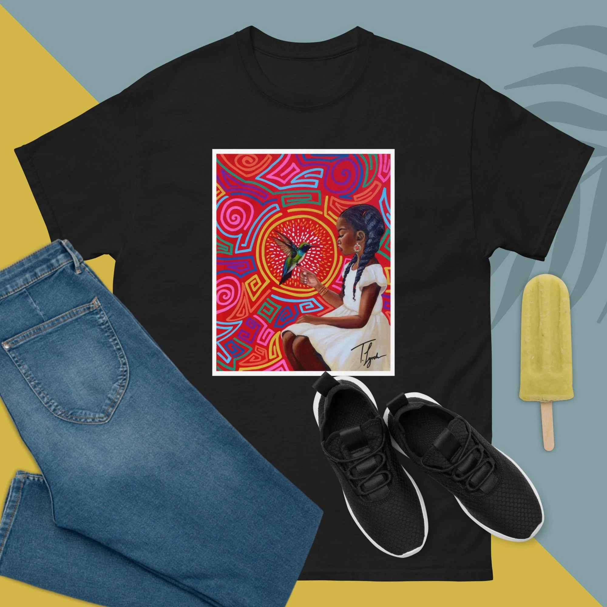 Step into wearable art with the “Irene” Unisex Classic Tee by T. Lynch Art. Featuring Tamani Lynch’s fan-favorite original painting, this piece blends bold expression with everyday style. Designed for a structured, streetwear-ready fit, this tee delivers both comfort and statement—perfect for art lovers who want to carry creativity and culture wherever they go.